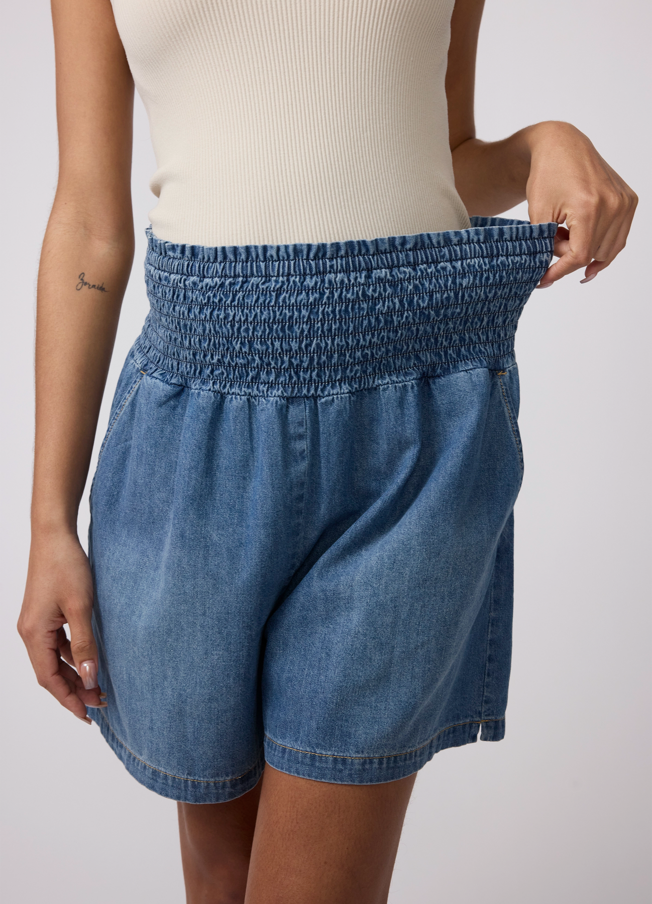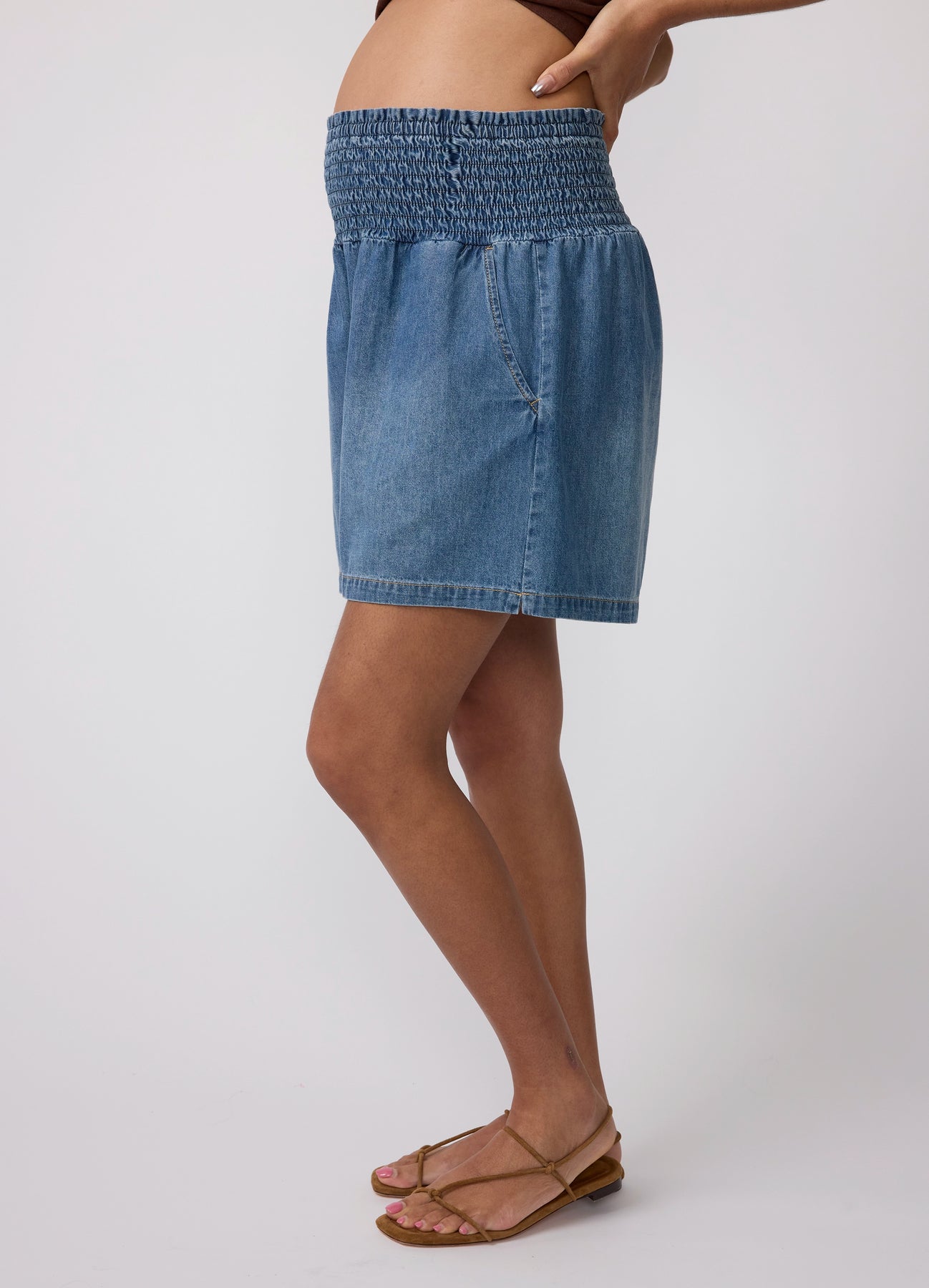 Smocked Waist Denim Maternity Short