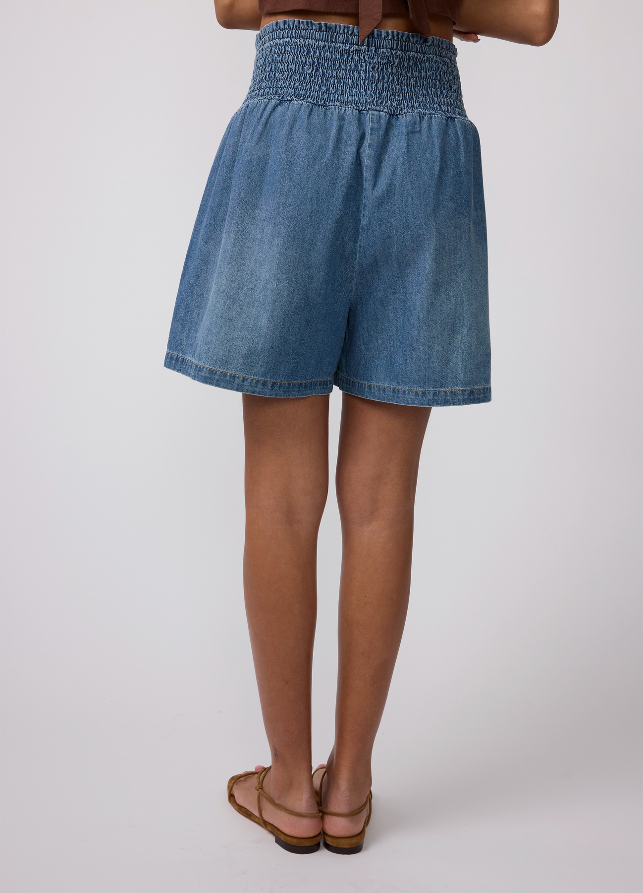 These are the shorts you reach for when it’s hot and you don’t want to think. Cut from soft, lightweight denim with a comfortable smocked waistband, they pull on easily and sit just right, with a relaxed wide leg that moves with you. Finished with slanted pockets and contrast stitching, they’re equal parts easy and flattering—the kind of summer short you end up wearing again and again.